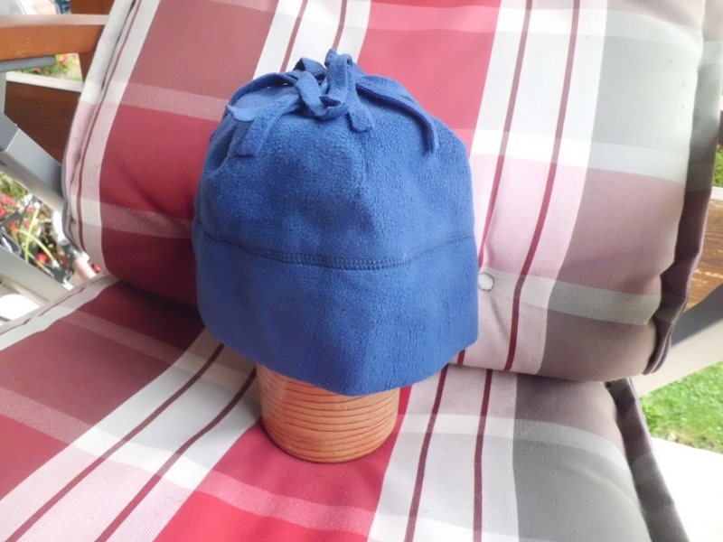 104-es lány sapka-kívül sötétkék polár, belül rózsaszín pamut- 450 ft