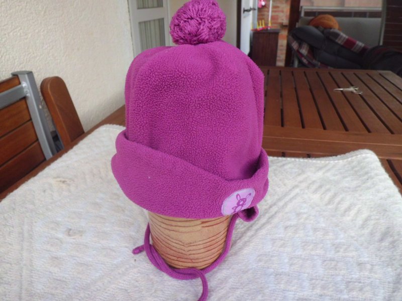 74-es 48 cm fejkörméretre való dupla - kívül polár, belül pamut - füles kötős lány sapka 550 ft