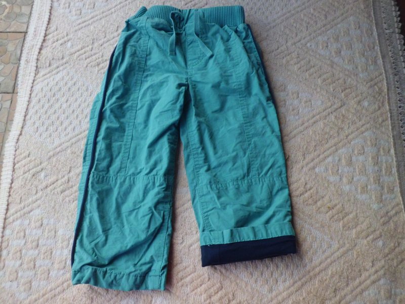 92-98-as türkizkék pamuttal bélelt unisex vászon nadrág bh. 33 cm. 450 ft