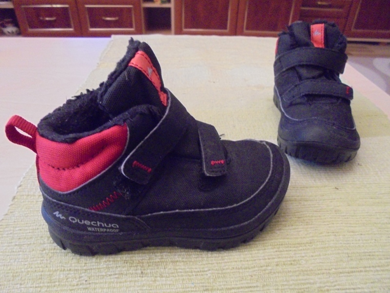 24-es Quechua vízálló bundás tépőzáras unisex fekete-piros bakancs bh. 15,5 cm 2000 ft