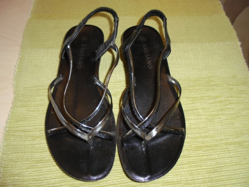 36-os Bassano arany pántos fekete új szandál bh. 22,5 cm 1500 ft