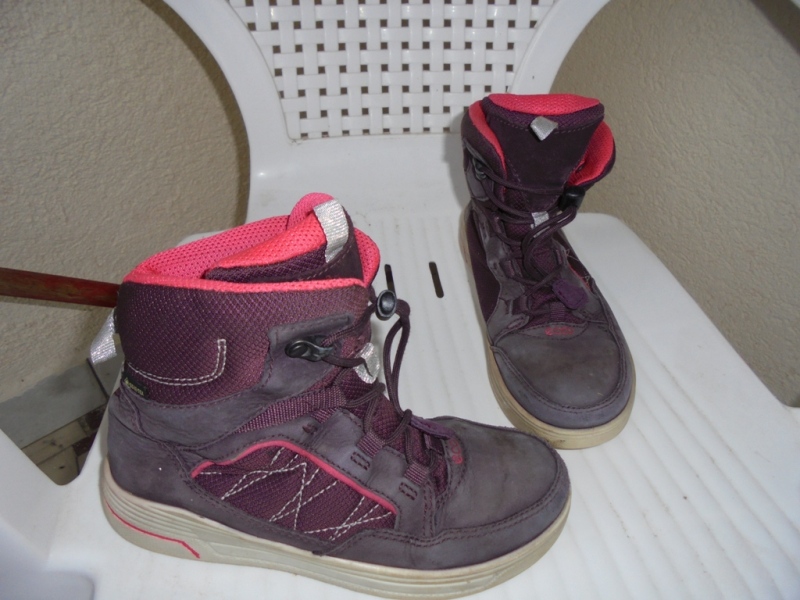 34-es Ecco bundás, goretexes, összehúzható fűzős sötétlila lány téli bakancs bh. 22 cm 2000 ft