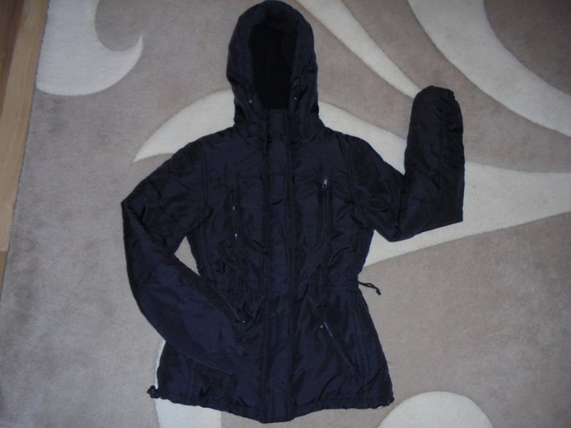 XS-es kb. 152-es Fishbone fekete hosszított vastag lány télikabát -H. 62, sz. 45, ujja 60, váll 9 cm.-3000 ft