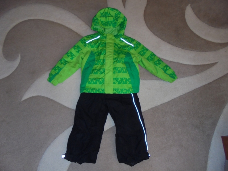 98-104-es síkabát + kantáros sínadrág 2 részes síoverál: Kabát H. elöl 44, hátul 48, sz. 40, ujja 38, váll 9 cm., nadrág H. 60, bh. 35, db. 28-32-ig enged, csb. 39 cm 3800 ft