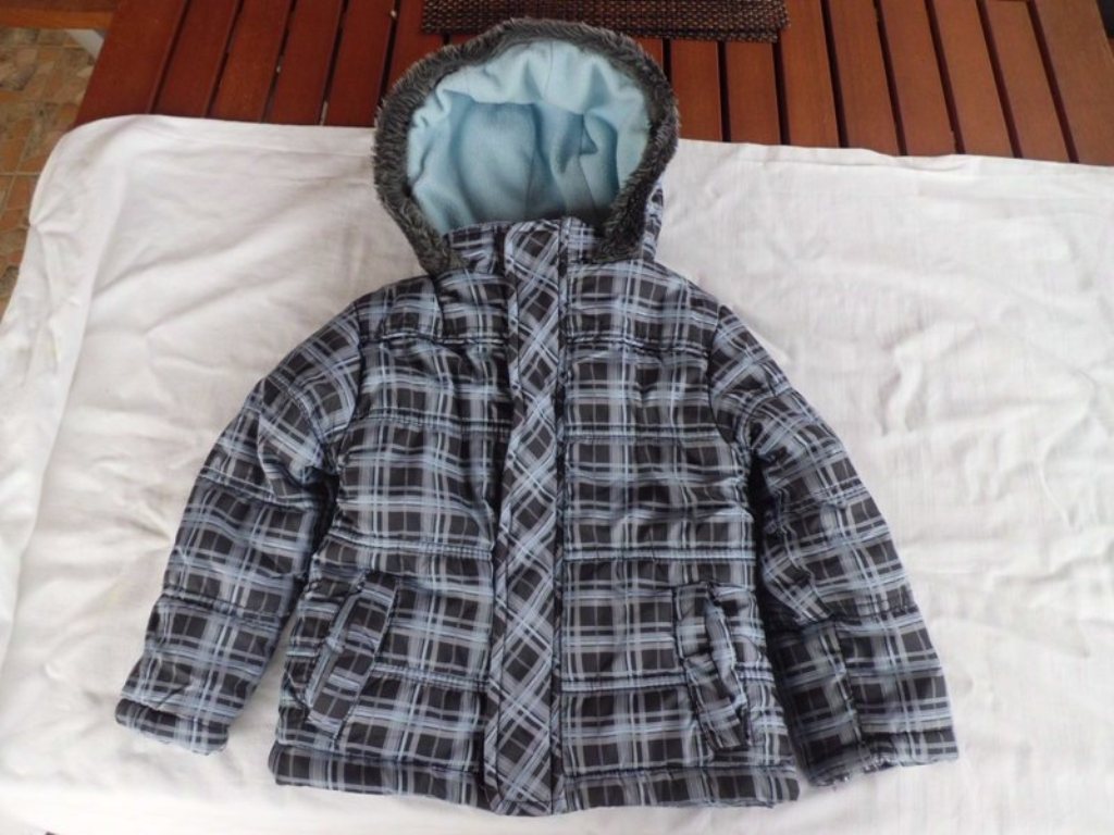 80-as 3 rétegű fiú átmeneti- habkabát-kapucni fix, ujja gumival szűkített-H. 37, sz. 31, ujja 31, váll 7 cm.- 1500 ft