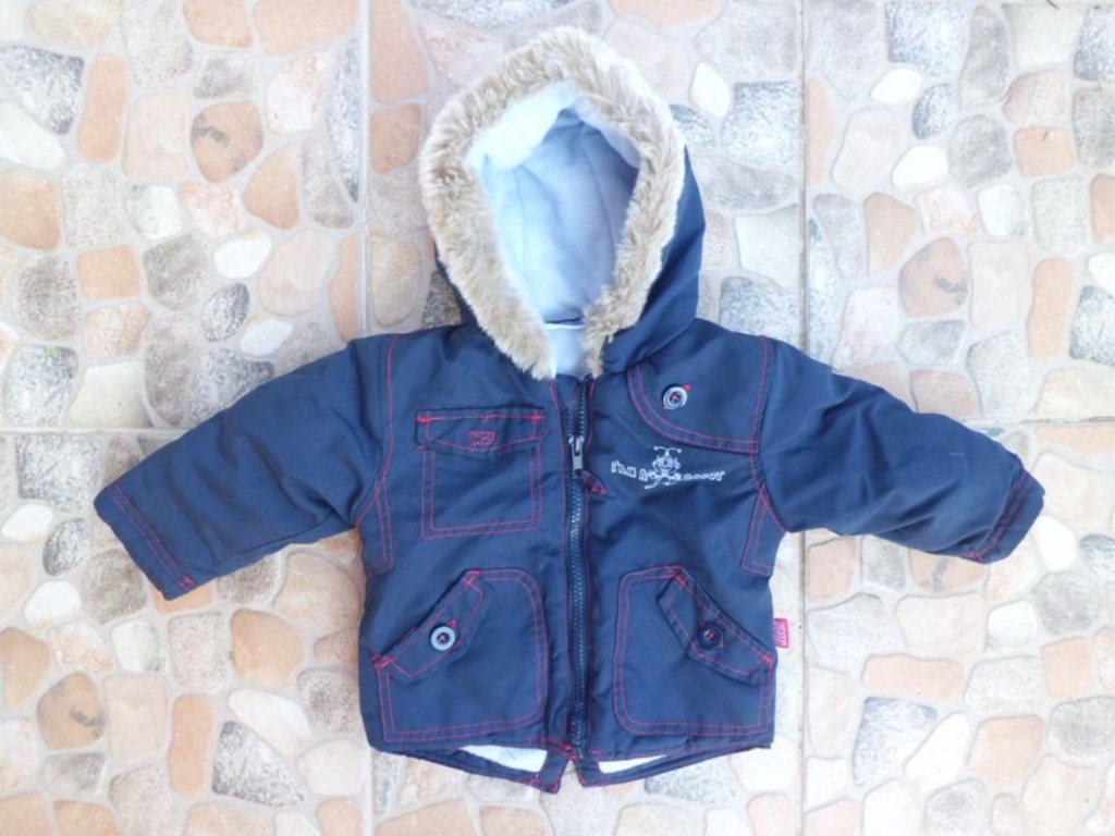 74-es Okay polárral bélelt fenéktakarós sötétkék! téli kabát -H. elöl 31, hátul 35, sz. 31, ujja 23, váll 7 cm.-1300 ft