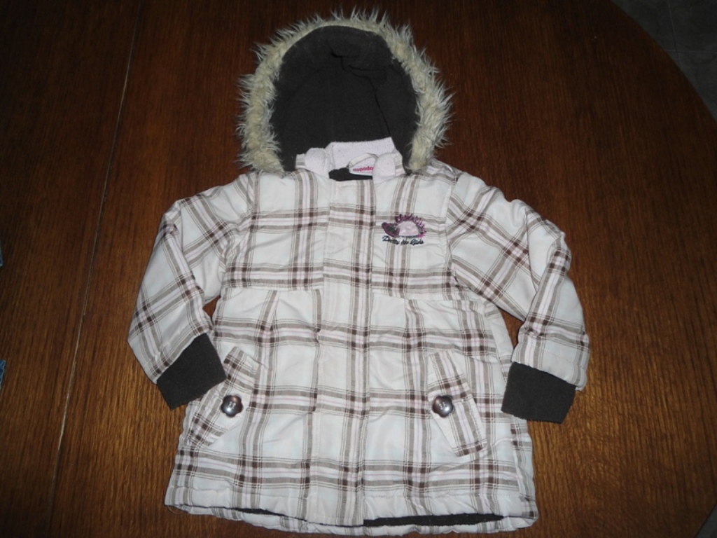 80-86-os dopodopo 3 rétegű polár béléses lány kabát-kapucni lecsatolható, középvastag- H. 36, sz. 29, ujja 33, váll 5 cm.-1500 ft