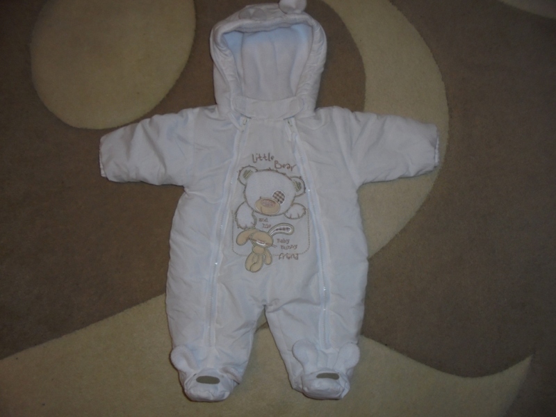 56-62-es fehér babaoverál - mindkét oldalon teljesen szétcipzározható- h. 49, bh. 15, sz. 31, ujja válltól 20+váll 5 cm 1500 ft