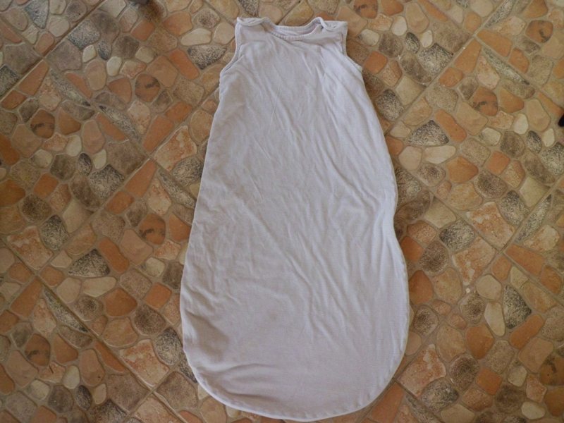 84 cm hosszú szürke-fehér hajszálcsíkos 2 rétegű hálózsák - vállán patent, oldalt és alul cipzáros - 1000 ft